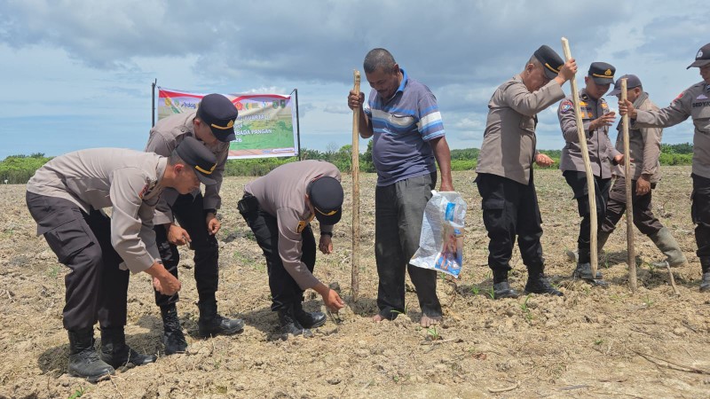 Menurut IPTU Apriadi, kegiatan penanaman bibit jagung ini dalam rangka mendukung program nasional ketahanan pangan Tahun 2026.