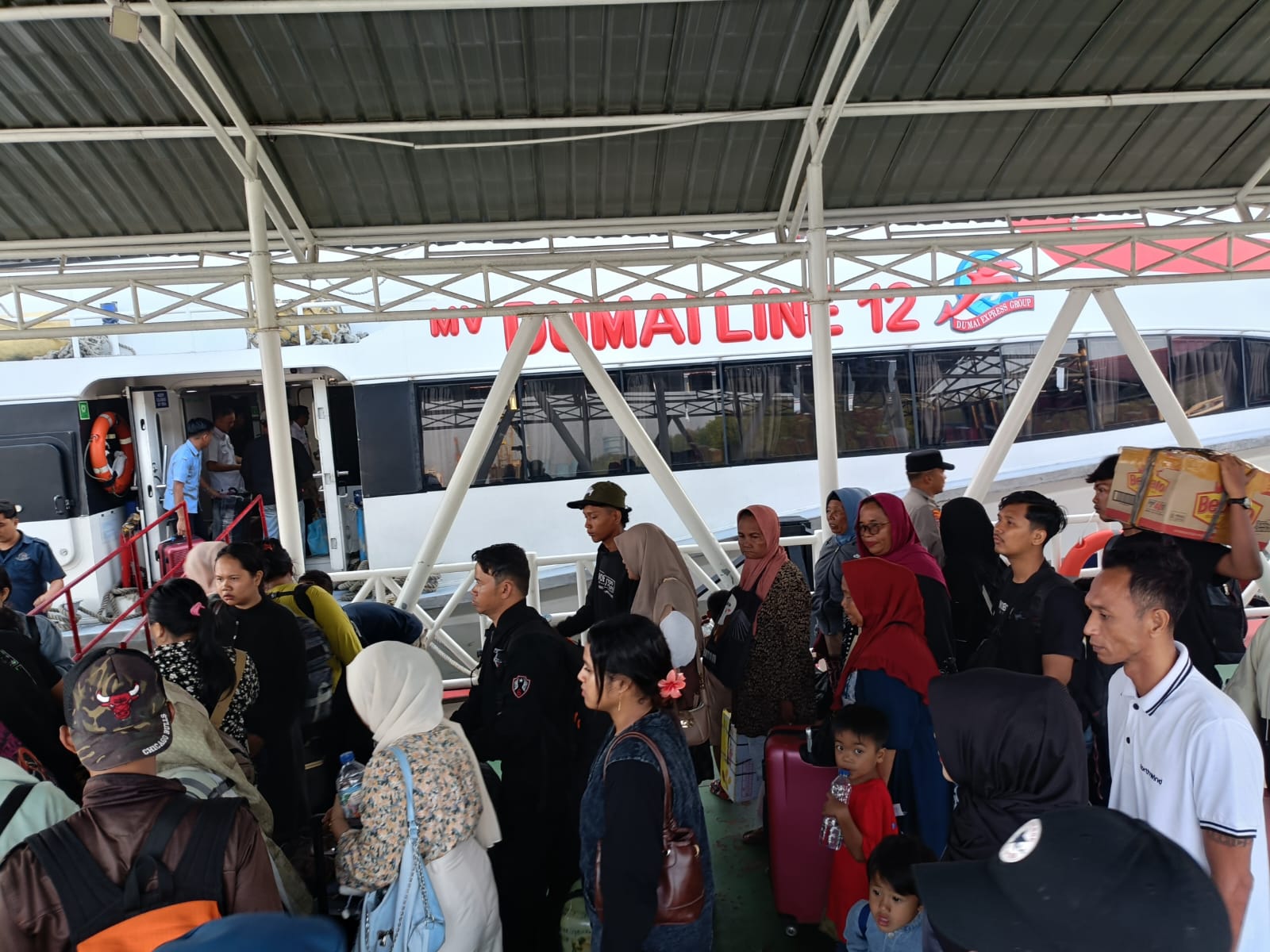 RZNEWS – Arus balik Idul Fitri 1447 H pada H+4 di Terminal Penumpang Pelindo Regional 1 Dumai mengalami lonjakan yang signifikan dari tahun lalu baik di kedatangan maupun dikeberangkatan.