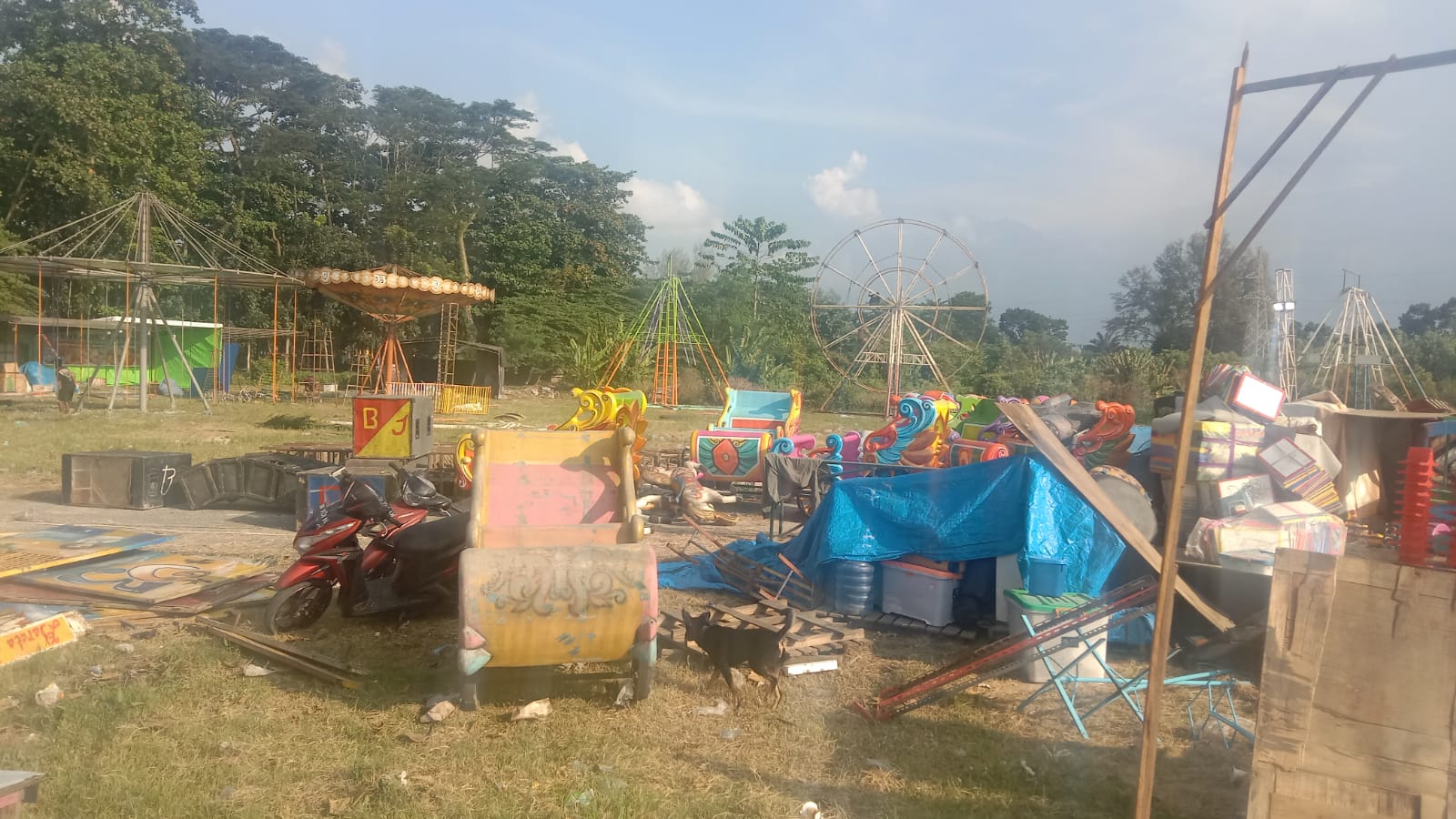 Selain itu, mulai terlihat tiang tiang permainan yang berada di Jalan Sudirman tepatnya di depan Jalan Lepin