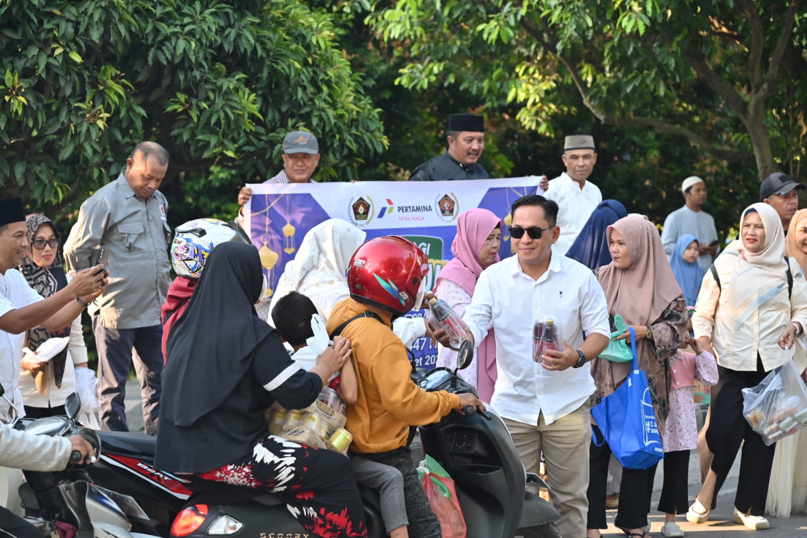 Kegiatan diawali dengan pembagian takjil gratis kepada masyarakat melintas di Jalan Putri Tujuh, lalu menyalurkan bantuan sembako kepada para janda wartawan anggota PWI sebagai bentuk kepedulian dan solidaritas keluarga besar wartawan.
